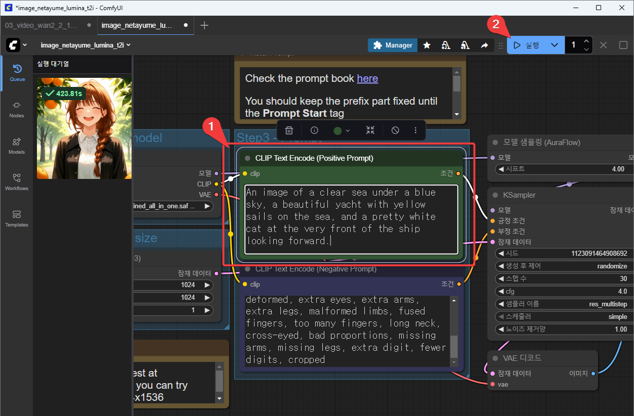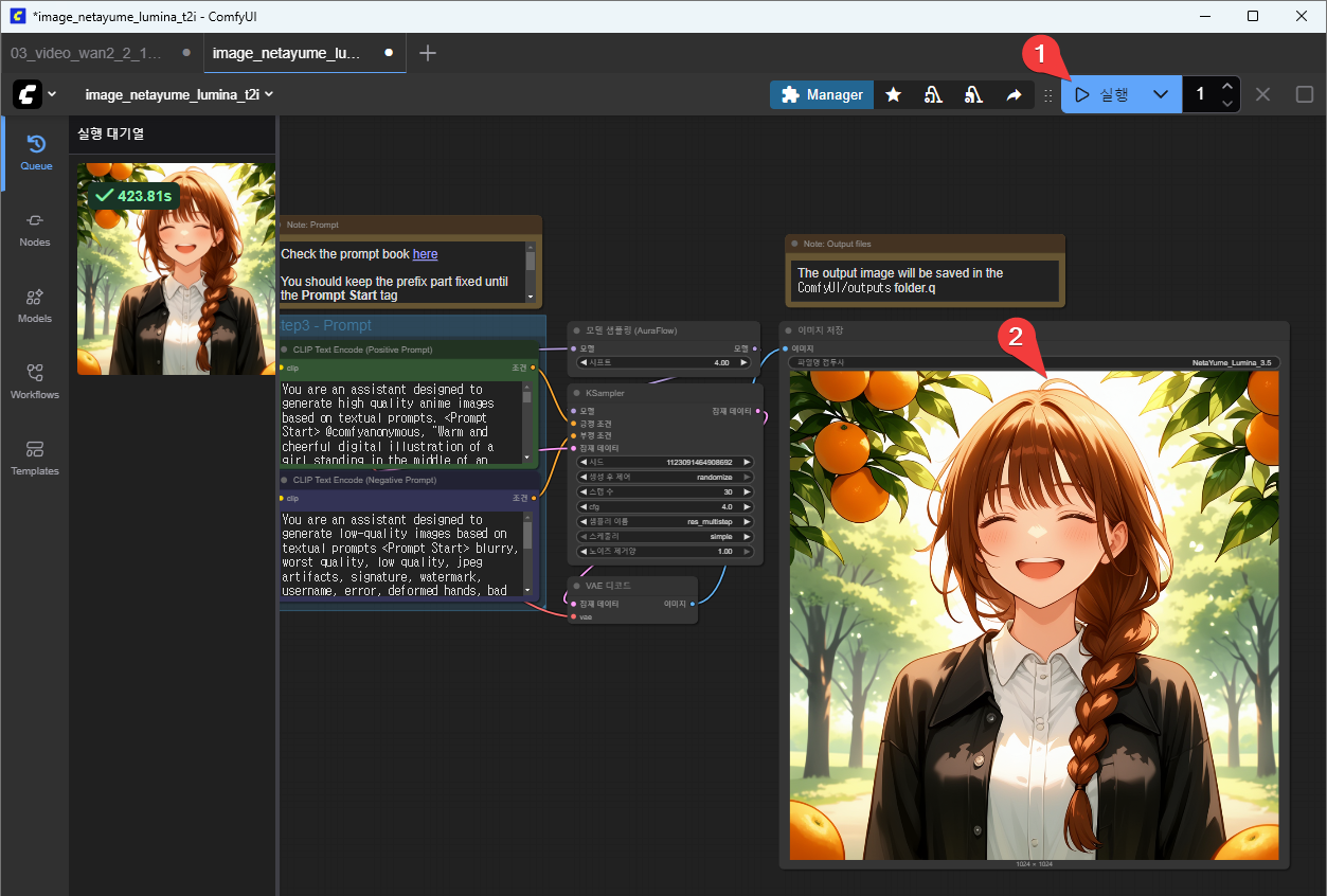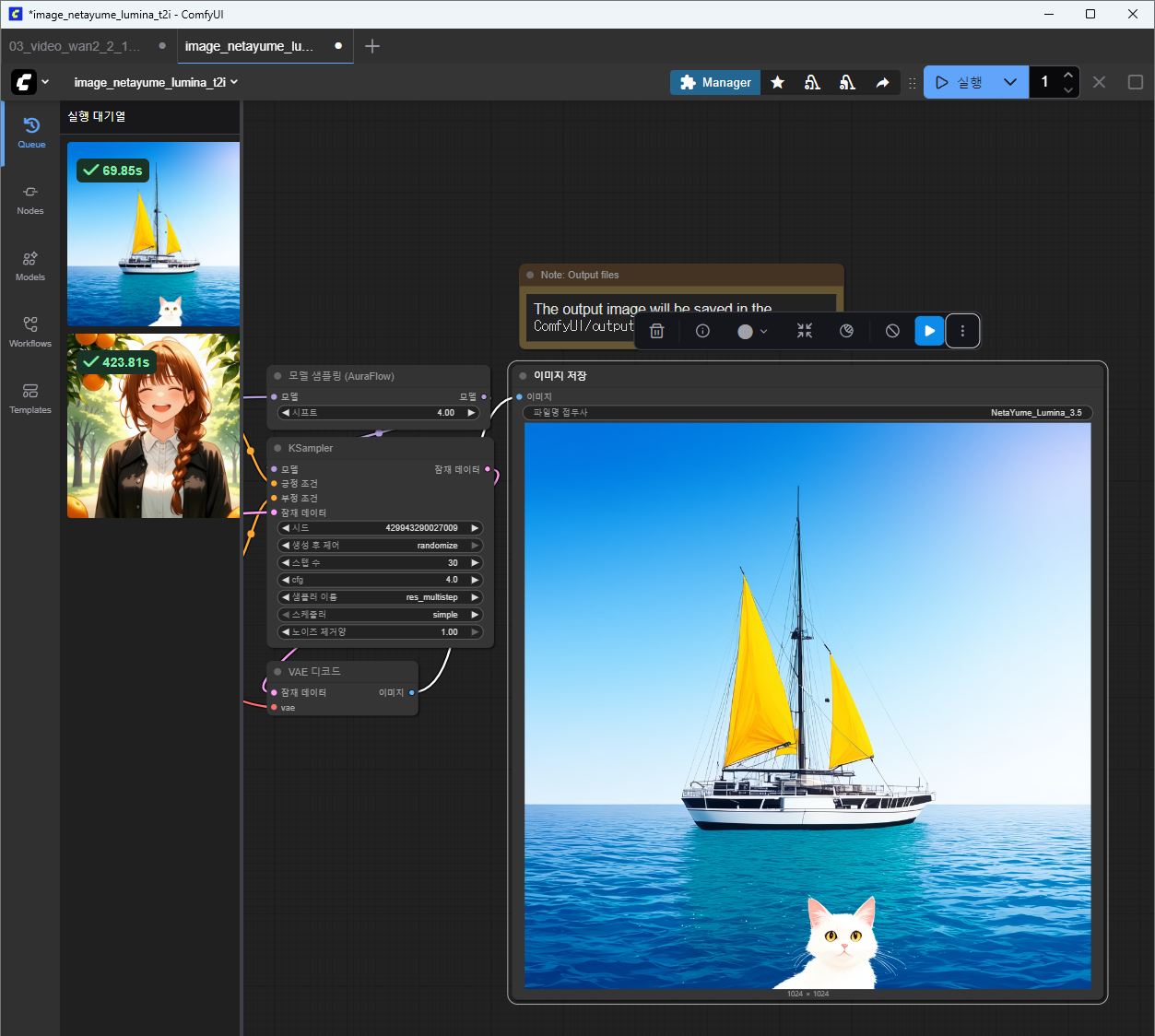 이미지 관련 템플릿이 많지만 여기서 NetaYume Lumina 모델을 선택한다. 이 모델은 텍스트를 이미지로 바꿔준다.