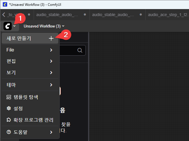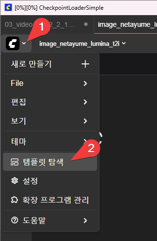 comfyUI 실행하면 바로 위와 같은 템플릿이 나온다. 이 템플릿을 다시 보는 방법은 2가지가 있다.