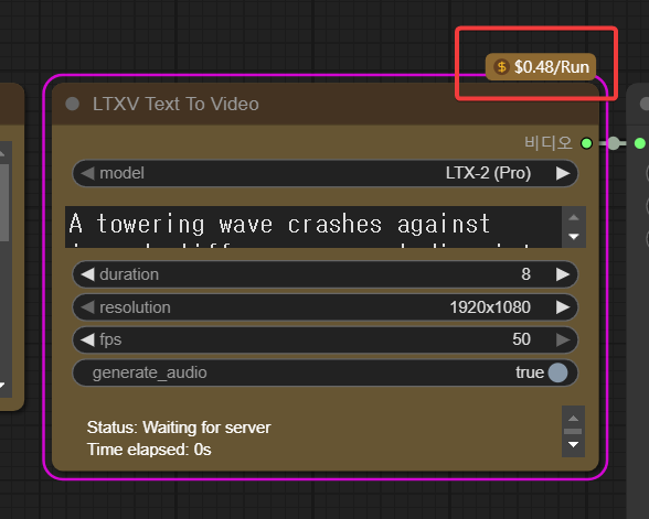 유료 모델은 노드에 금액이 표시된다. 이 모델의 경우 한 번 실행할 때마다 $0.48를 지불해야 한다.