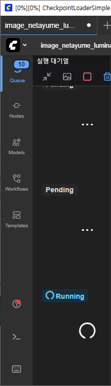 queue에 10개의 칸이 생기고 맨 아래 하나만 Running(실행) 상태이고 나머지는 Pending(대기) 상태로 표시된다.