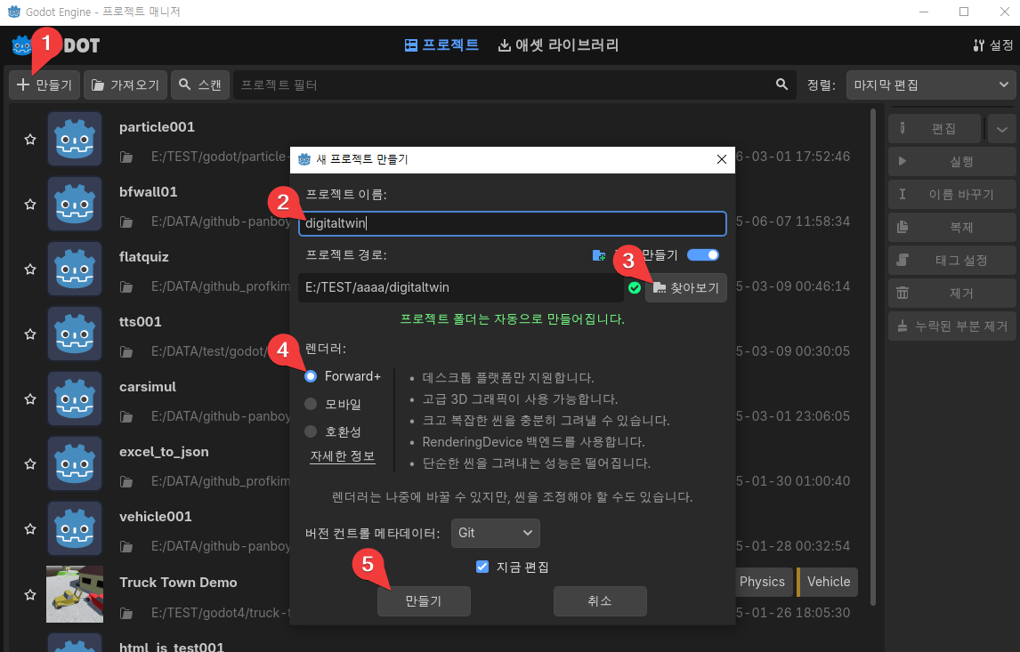 godot 엔진 프로젝트 생성