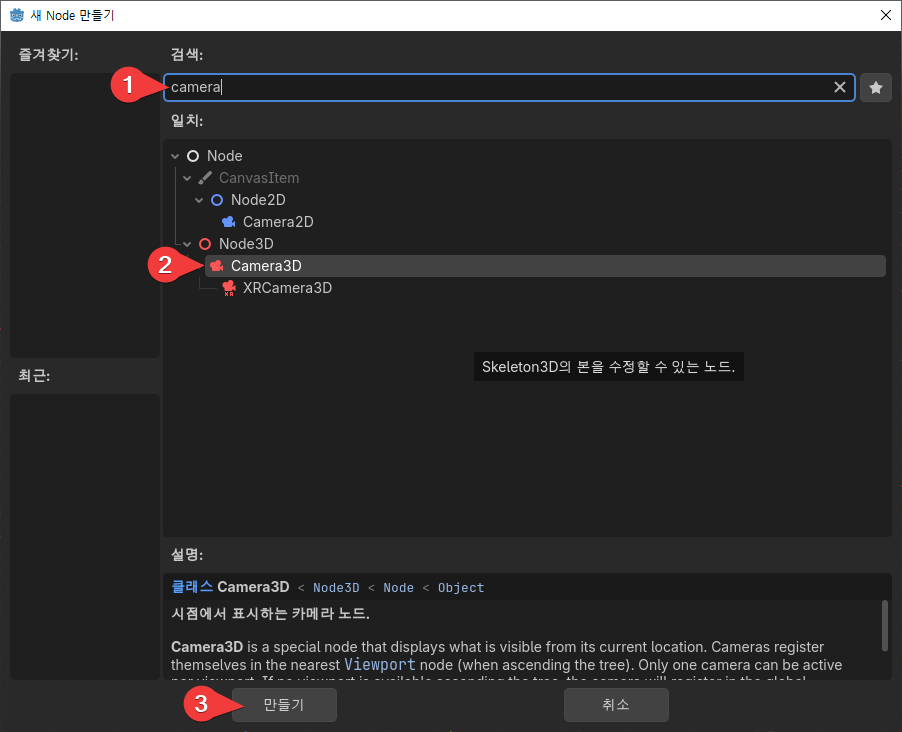 “Camera3D“를 선택한다.
