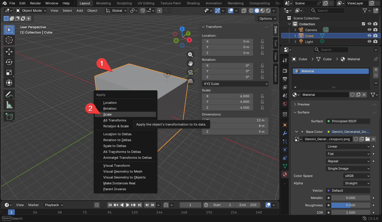 Ctrl + A를 누른다. Apply 메뉴가 나오면 “Scale” 메뉴를 선택한다.