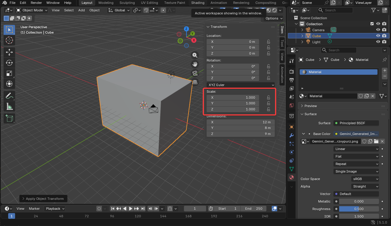 Scale 부분이 1, 1, 1로 바뀐 걸 확인한다.
