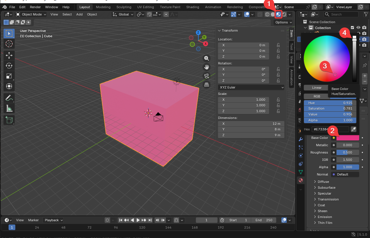 Base Color의 색을 클릭해 색 선택 창을 띄운다.